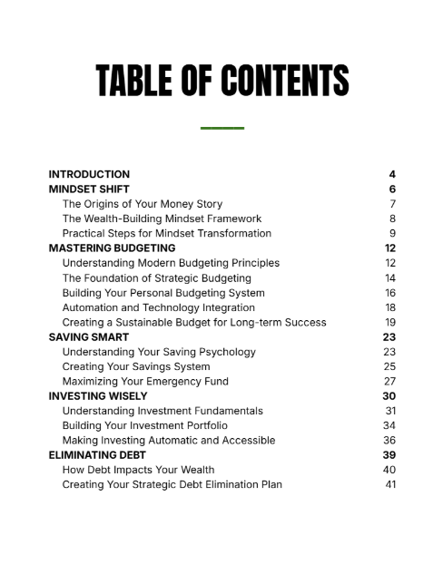 - This comprehensive guide provides everything you need to transform your financial situation. From automating your savings to creating multiple income streams, you'll discover the habits and systems that lead to true financial freedom. Stop working for money and learn how to make money work for you.