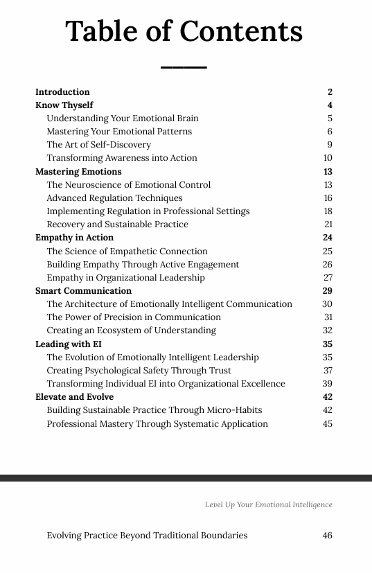 - ✅ Develop Daily EQ Habits: Simple, practical exercises that fit into your busy schedule and compound into remarkable emotional strength over time.